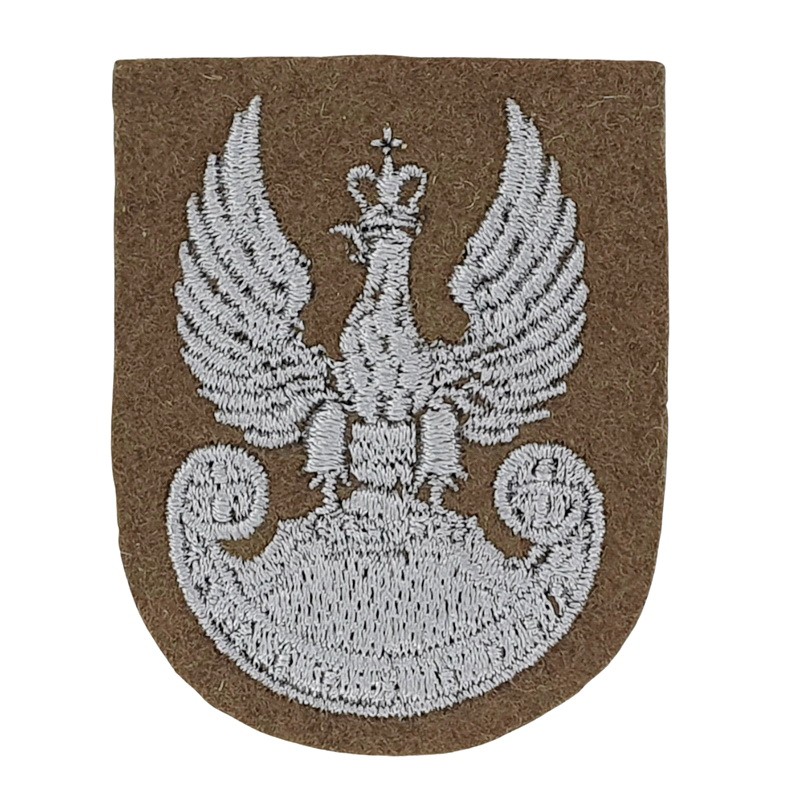 Polish Army eagle to be sewn onto a green beret. Version made as an embossed plastic print, rubberised.