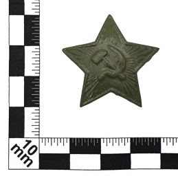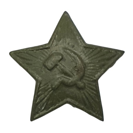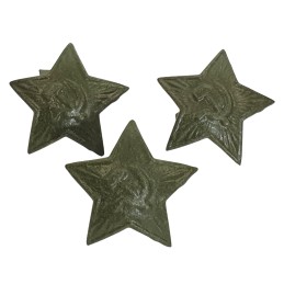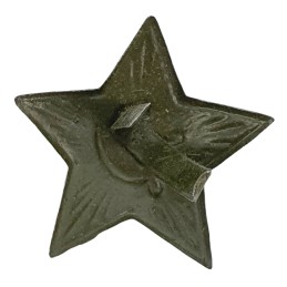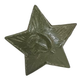 An original star from World War II. Mainly used on winter hats worn by Red Army soldiers. Stamped from thin steel sheet and painted with dark green, semi-matt paint. Version A - the most rounded. Height 32 mm.