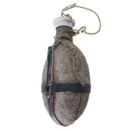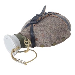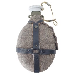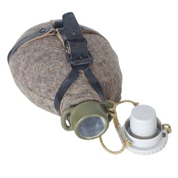 Made of batting tarpaulin for a typical Russian aluminium canteen. Fastened with a pin and attached to the belt. A replica of one of the World War II designs.