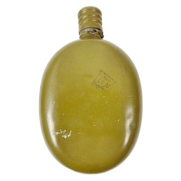 Plastic canteen of the East German Army (NVA). With cover, metal cup and artificial leather straps. Capacity: 1 litre.