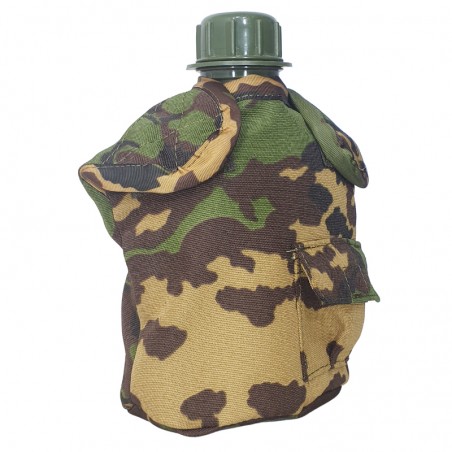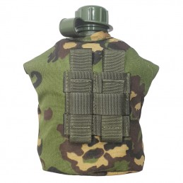 Cover for a standard NATO (US) plastic canteen. Inside sewn-in insulating layer to keep your drink at temperature for longer. Pouch for water decontamination tablets. MOLLE system attachment. With more MOLLE straps, it can also be attached to the main belt.