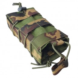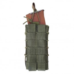 Pouch for 1 magazine for an AK-47 or AK-74 rifle, with attachment to MOLLE-type belt carrying systems. The magazine can be secured from above with a rubber.