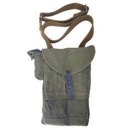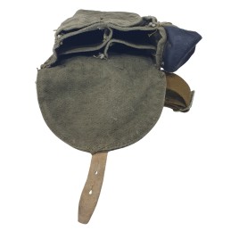 Modelled on the Soviet one, a pouch for 3 magazines for the DP Hand Machine Gun. Made of thick tarpaulin. Fastened by a leather strap with a metal buckle, with a shoulder strap for carrying on the shoulder. Special metal magazine holders inside.