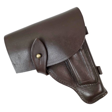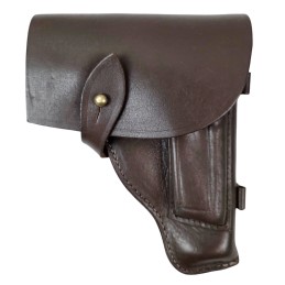 Made of "kierza" (artificial leather) universal holster - intended both for TT wz 33 pistol and Nagant 1895 revolver. Belt loops, knop buckle, leather trim. Under the flap a pocket for spare magazine or cartridges for a revolver. Pattern introduced during World War II - exemplars from 1947-1950 production, sewn flat. Kierza with brass konp.Version C -...