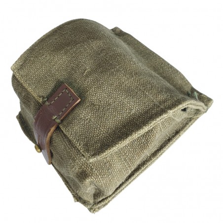 Płócienna ładownica na dwa granaty ręczne. Wzór produkowany od czasów II Wojny Światowej do lat 90-ych. Mocowana do pasa na parciane szlufki. Wersja z grubego, ciemnozielonego brezentu, z brązowym paskiem do zamykania.