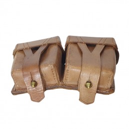 Ładownice w dobrym i bardzo dobrym stanie zachowania. Wszystkie w pełni funkcjonalne, z miękkiej (nie łamiącej się) skóry. Noszą ślady magazynowania - lekkie otarcia, ślady śniedzi na mosiężnych okuciach. Wszystkie wypełnione specjalnie przycięta pianką, dla zachowania kształtu.