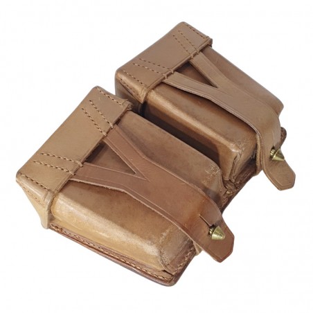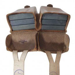 Skórzana ładownica na łódki z nabojami do karabinu Mosin. Kieszonki mieszczą 30 naboi (6 łódek). Wykonana ze skóry, w latach 50-ych w okupowanych Niemczech w ramach reparacji wojennych dla ZSRR - identyczne ładownice były robione w ZSRR przed wybuchem II Wojny Światowej.Tutaj oferujemy ładownicę wykonaną z jasnej, groszkowanej, licowanej skóry, z...