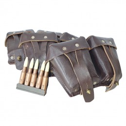 Skórzana ładownica na łódki z nabojami do karabinu Mosin. Kieszonki mieszczą 30 naboi (6 łódek). Wykonana ze skóry, w latach 50-ych w ZSRR. Identyczne ładownice były robione w ZSRR w 1940 i 1941 roku - jest to uproszczona wersja ładownicy M37, z gorszej skóry.