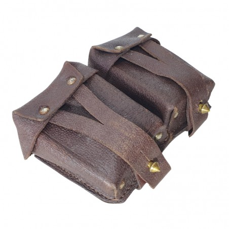 Ładownice w dobrym i bardzo dobrym stanie zachowania. Wszystkie w pełni funkcjonalne, z miękkiej (nie łamiącej się) skóry. Noszą ślady magazynowania - lekkie otarcia, ślady śniedzi na mosiężnych okuciach. Wszystkie wypełnione specjalnie przycięta pianką, dla zachowania kształtu.