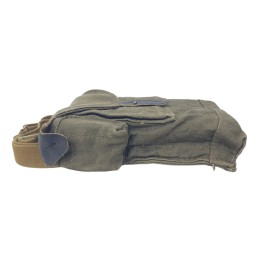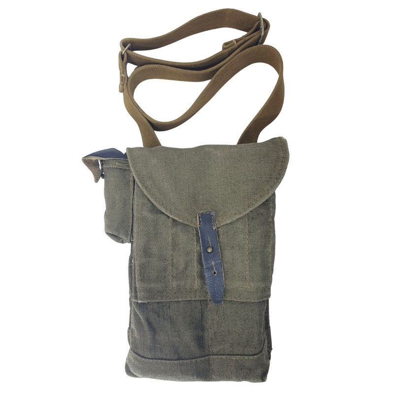 Oryginalna radziecka ładownica na 3 magazynki do Ręcznego Karabinu Maszynowego DP. Wykonana z grubego brezentu. Zapinana na skórzany pasek z metalową sprzączką, z pasem do przenoszenia na ramieniu. Wewnątrz specjalne metalowe uchwyty mocujące magazynki.Egzemplarze z powojennej produkcji, identyczne z tymi z czasów II Wojny Światowej.