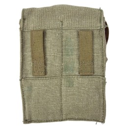 Standardowa, radziecka ładownica na 3 magazynki do AK-47 lub AK-74, olejarkę i przybornik. Mocowana do pasa na parciane szlufki. Brezent w kolorze zielonym, skórki do zapinania brązowe.