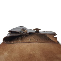 Skórzana kabura do pistoletu Makarow. Podwójna szlufka do pasa, zapięcie na knopik. Kabura częściowo szyta a częściowo nitowana. Produkcja bułgarska z lat 1970-89.