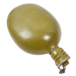 Aluminiowa manierka Armii Czechosłowackiej (CSLA). Z pokrowcem z grubego sukna, umożliwiającym dłuższe utrzymanie temperatury napoju wewnątrz oraz ze skórzanymi trokami. Manierka w kolorze zielonym, pokrowiec szaro-brązowy, skórzane troki czarne.