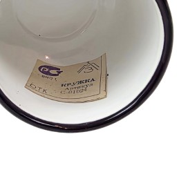 Emaliowany kubek wojskowy, do pojenia rannych w szpitalu. Pojemność 0,35 l. Wyprodukowany w Czechosłowacji w latach 1970-80.