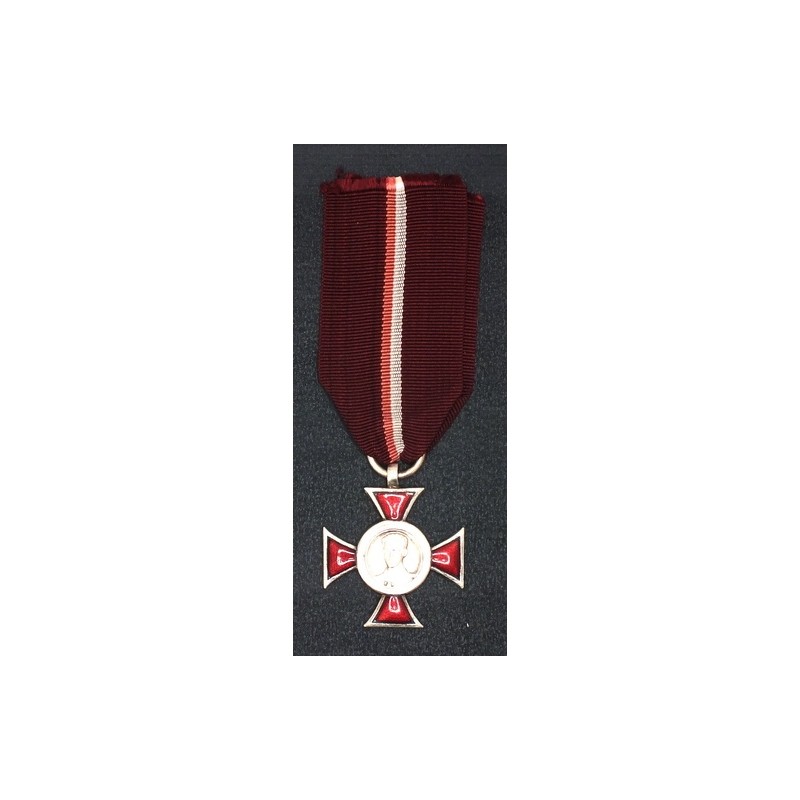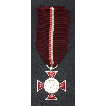 Miniatura medalu - "Za Zasługi w Boju". Medal przyznawany za zasługi na polu bitwy.