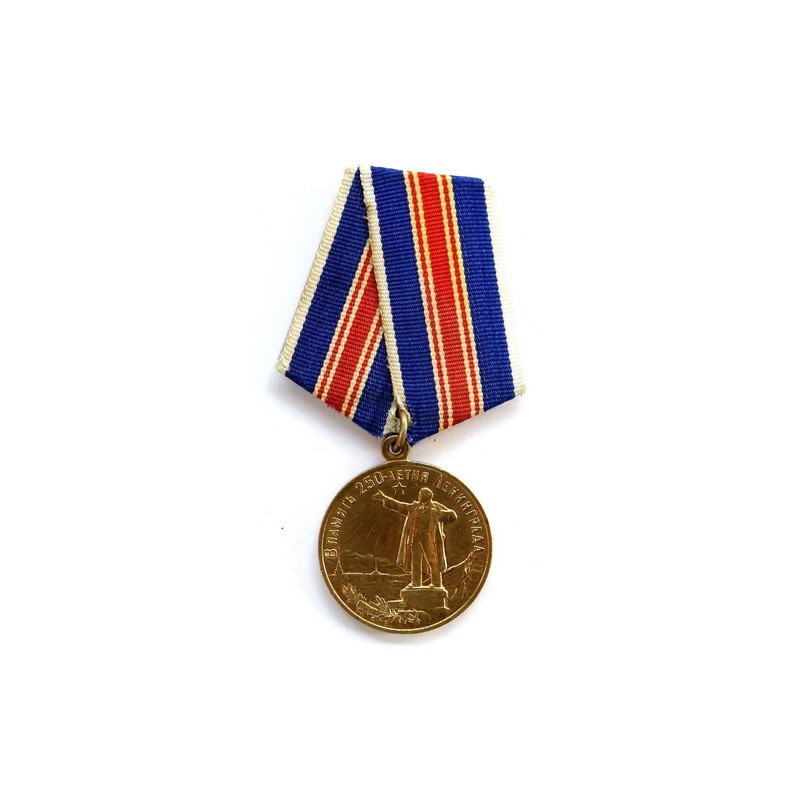 Medal okolicznościowy z 1953 roku. Przyznawany z okazji 250-lecia założenia Sankt-Petersburga (później Leningradu i obecnie Petersburga). Na awersie napis „W pamiat 250-lietia Lieningrada” („Na pamiątkę 250-lecia Leningradu”), a na rewersie „Gorodu-Gieroju Sława! 250” („Sława Miastu-Bohaterowi! 250”).