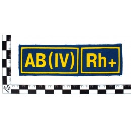 Naszywka z grupą krwi. Wprowadzona Rozkazem 300. Wersja na mundury garnizonowe - żółte litery na oliwkowym tle. Naszywka z rzepem.