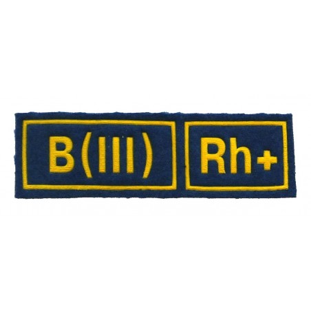 Naszywka z grupą krwi. Wprowadzona Rozkazem 300. Wersja na mundury garnizonowe - żółte litery na oliwkowym tle. Naszywka z rzepem.