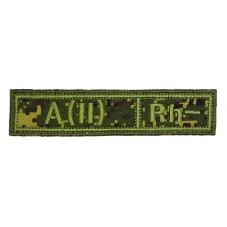 Naszywka z grupą krwi. Wprowadzona Rozkazem 300. Wersja polowa - zielone litery na tle w kamuflażu Cyfrowa Flora. Naszywka z rzepem.
