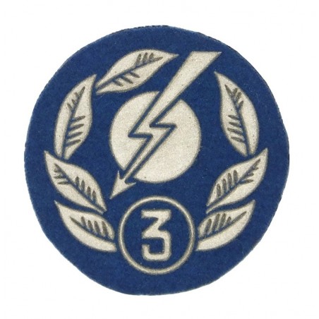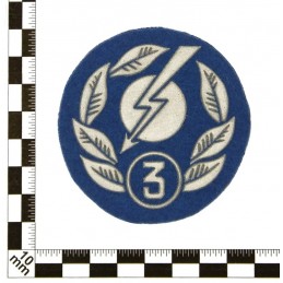 Oznaka Specjalisty 3 Klasy - Służba Elektrogazowa. Niebieska - żołnierze oddziałów należących do Wojsk Lotniczych i OPK.