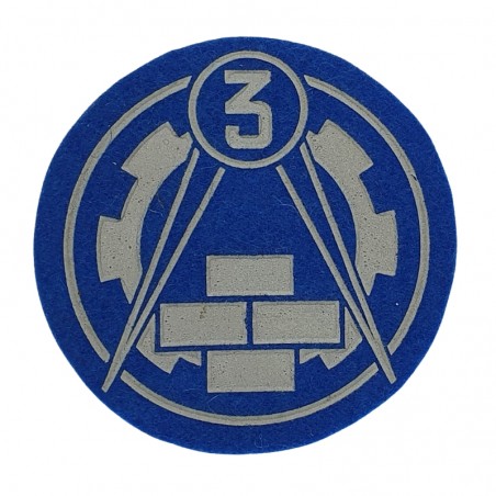 Naszywka naramienna Specjalista 3 Klasy - Służba zakwaterowania i budownictwa wojskowego. Noszona na lewym rękawie munduru. Niebieska - żołnierze oddziałów należących do Wojsk Lotniczych i Obrony Powietrznej Kraju.