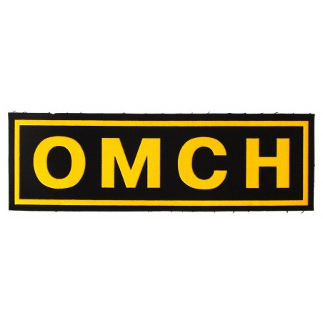 Naszywka na plecy "OMON". Wzór wprowadzony w 2012 i zmodyfikowany w 2014 - gaszona - czarny nadruk na zielonym tle.