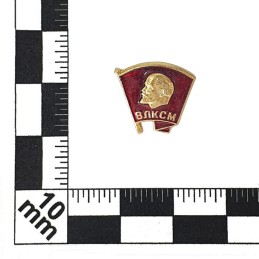 Pamiątkowa odznaka dla członków Komsomołu (komunistycznej organizacji młodzieżowej). Noszona najczęściej na klapie cywilnej marynarki. Zapinana na agrafkę.