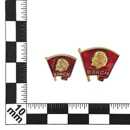 Pamiątkowa odznaka dla członków Komsomołu (komunistycznej organizacji młodzieżowej). Noszona najczęściej na klapie cywilnej marynarki. Zapinana na agrafkę.