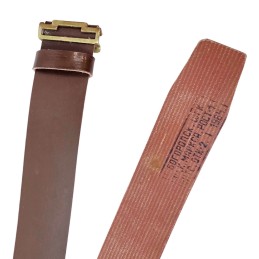 Radziecki pas główny wykonany z pasa parcianego, pokrytego brązową gumą. Klamra i zapięcie stalowe, malowane na zielono.