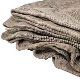 Radziecka siatka maskująca MKT. Wykonana z grubych lnianych nici. Z jednej strony kamuflaż jest wyraźniejszy, z drugiej jaśniejszy. Przez siatkę przewleczone są sznurki do mocowania do maskowanego obiektu lub pojazdu. Siatka ma także dodatkowe nacięcia do łączenia kilku w jeden większy kawałek.