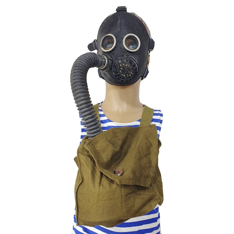 Maska przeciwgazowa PDF-DA (Противогаз ПДФ-ДА), przeznaczona dla dzieci w wieku 1,5-3 lata. Maska jest nowa, nieużywana. W komplecie torba do przenoszenia i filtr powietrza. Produkcja z przełomu lat 80-ych i 90-ych. Maska PDF-DA w rozmiarze 1 ma inną budowę niż standardowe i przeznaczona jest dla dzieci w wieku 1,5-3 lata. Wersja z torbą na klatkę piersiową - dla mniejszych, młodszych dzieci.