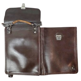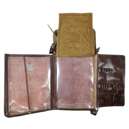 Radziecki, skórzany mapnik oficerski. Kieszenie na dokumenty i duża kieszeń z przezroczystą osłoną na mapę. Organizer na przybory. Pasek do przewieszenia przez ramię i mały pasek do przenoszenia mapnika w ręku - jak teczkę.